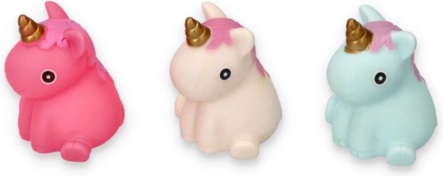 Ανακαλύψτε τον μαγικό κόσμο του μπάνιου με ένα σετ μονόκερων σε απαλές αποχρώσεις. Κάθε μονόκερος έχει χρυσό κέρας και χαρούμενη χαίτη, που ενθαρρύνουν τη φαντασία των παιδιών. Χάρη στο ευχάριστο, απαλό υλικό πιέζονται εύκολα και είναι ιδανικοί για τα μικρά παιδικά χέρια.