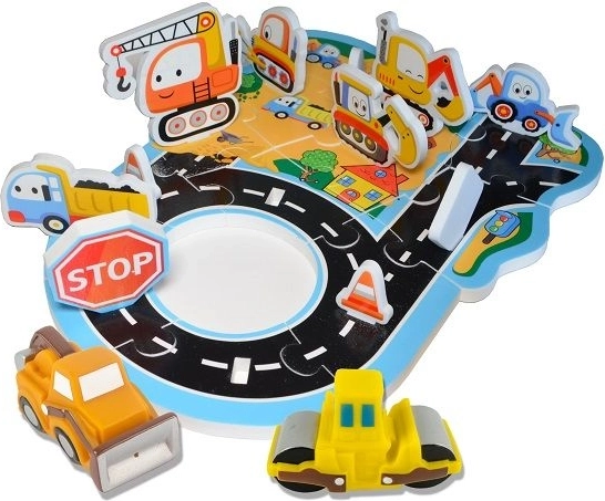 Ελαφριά αφρώδη κομμάτια που επιπλέουν και, όταν βραχούν, κολλούν στα πλακάκια. Τα παιδιά φτιάχνουν δρόμους, τοποθετούν σήματα και ζωντανεύουν το παιχνίδι με κατασκευαστικά οχήματα.