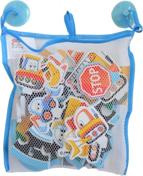 Αυτό το πολύχρωμο σετ μπάνιου μετατρέπει κάθε μπάνιο σε περιπέτεια. Τα πανάλαφρα αφρώδη κομμάτια επιπλέουν στο νερό και, όταν βραχούν, προσκολλώνται εύκολα σε λείες επιφάνειες, όπως πλακάκια ή το χείλος της μπανιέρας. Τα παιδιά μπορούν να συνθέτουν δρόμους, να τοποθετούν οδικά σήματα και να παίζουν με οχήματα έργου, ενώ μαθαίνουν τους κανόνες κυκλοφορίας.
