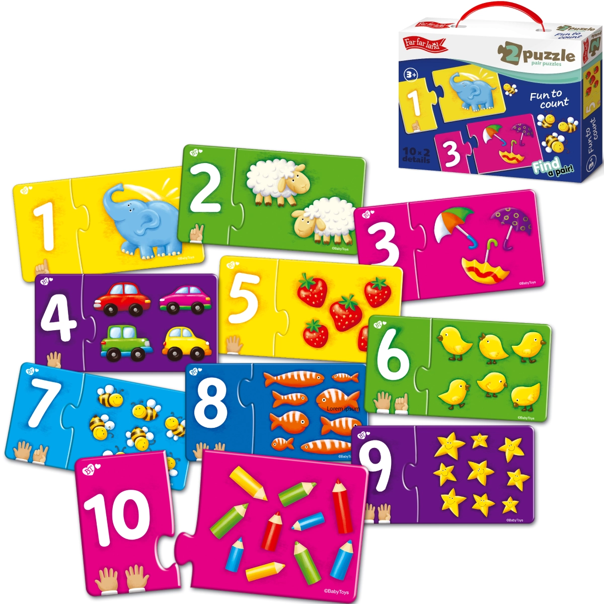 Αναπτύξτε τις ικανότητες αντιστοίχισης με αυτό το σετ Far Far Land Puzzle, που περιλαμβάνει 10 μοναδικές εικόνες. Κάθε εικόνα αποτελείται από δύο μέρη για εύκολη εκμάθηση μέτρησης έως το δέκα.