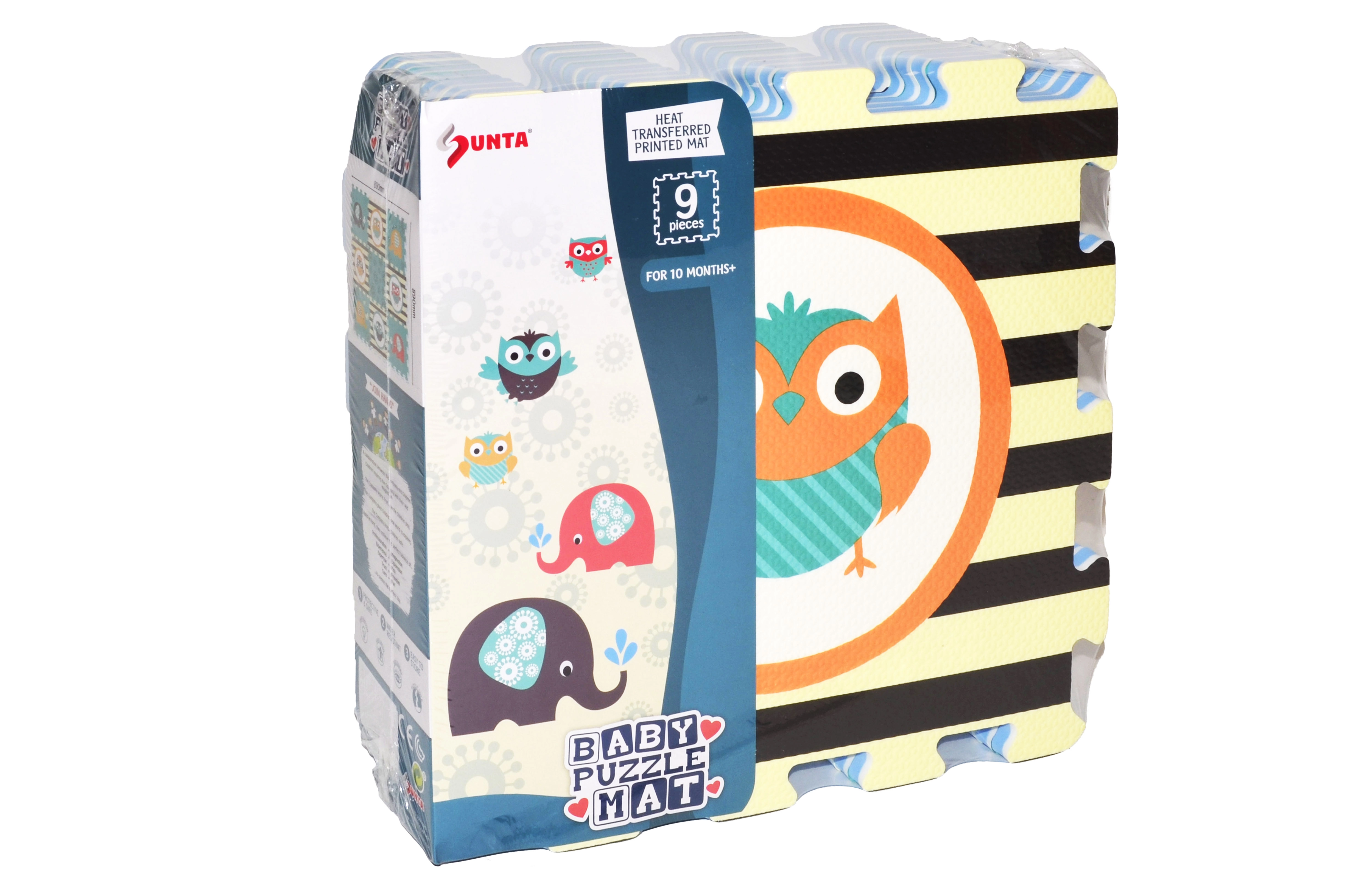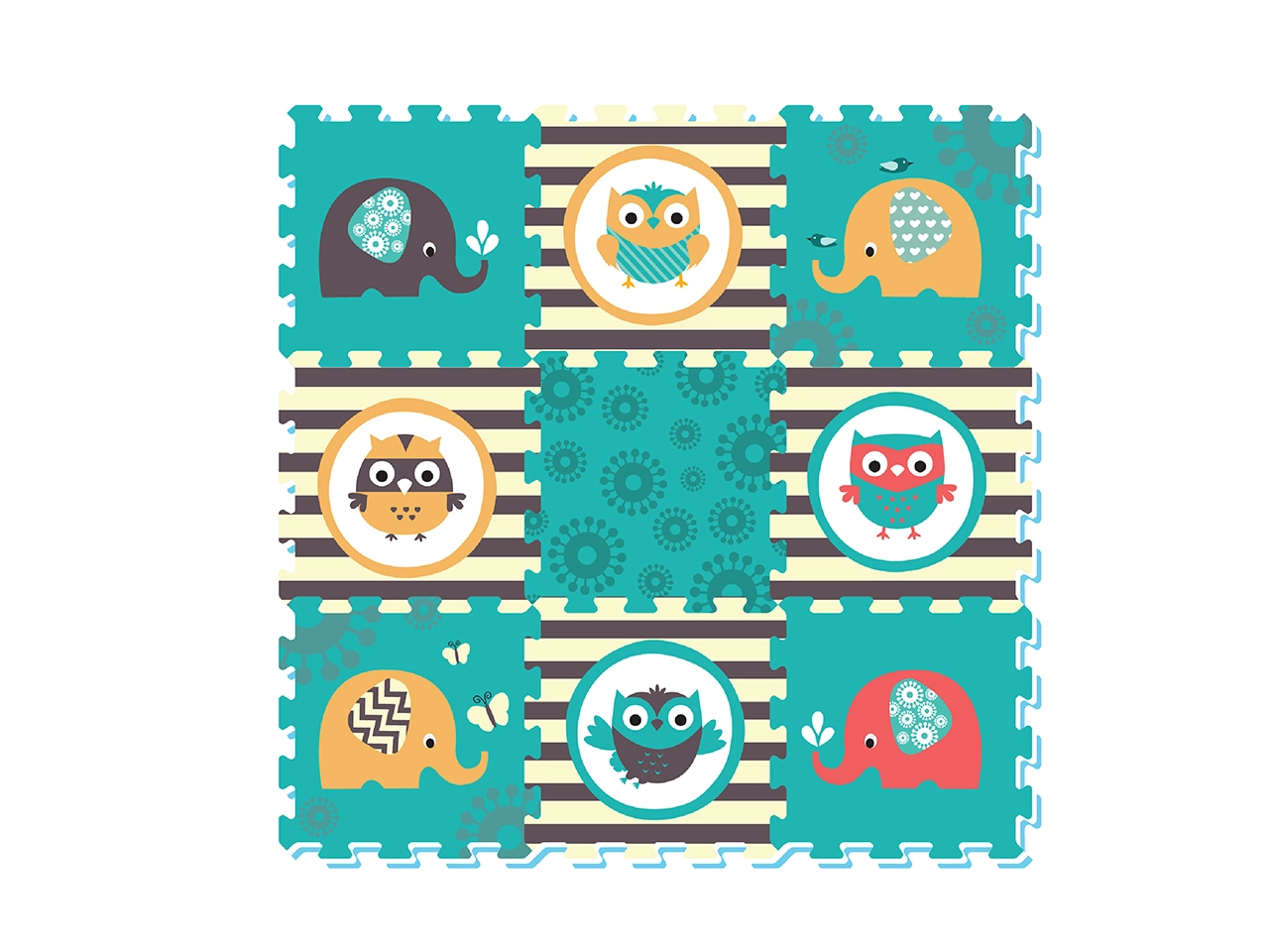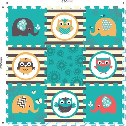Το αφρώδες παζλ με μοτίβα Κουκουβάγιας και Ελέφαντα σε ζωηρά χρώματα τραβά την προσοχή κάθε παιδιού.