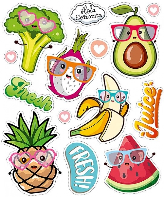 Το μεγάλο φύλλο θερμοκολλήσιμων αυτοκόλλητων με το θέμα «Χαρούμενα φρούτα» σάς επιτρέπει να μετατρέψετε εύκολα συνηθισμένα ρούχα σε πρωτότυπα και παιχνιδιάρικα. Απλώς κόψτε το μοτίβο, τοποθετήστε το στο ύφασμα και σιδερώστε. Με σωστή εφαρμογή, τα τυπώματα είναι ανθεκτικά και εύκολα στη φροντίδα.