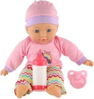 Η κούκλα συνοδεύεται από μπιμπερό και πιπίλα, προσφέροντας στα παιδιά μια ρεαλιστική εμπειρία παιχνιδιού. Χάρη στο μαλακό σωματάκι της είναι επίσης κατάλληλη για αγκαλιές και προσφέρει αίσθηση ασφάλειας.
