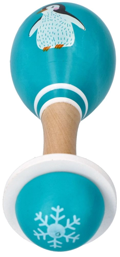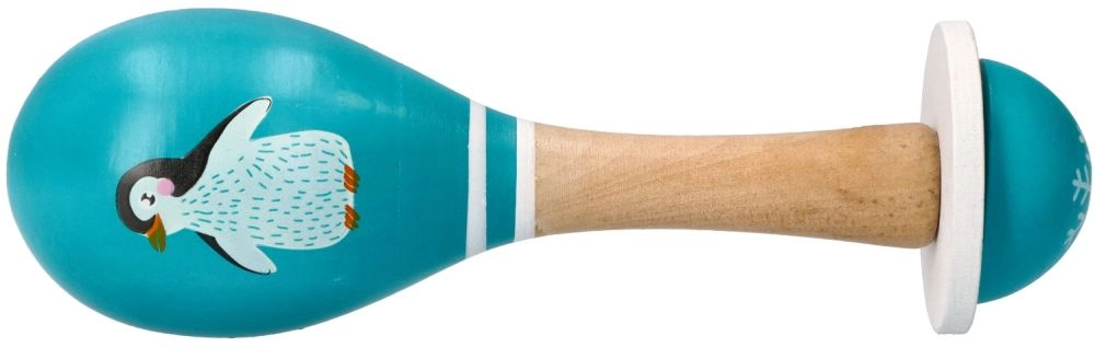 Χαριτωμένη ξύλινη μαράκα με μοτίβο πιγκουίνου που υποστηρίζει την ανάπτυξη ρυθμού, κινητικών δεξιοτήτων και ακουστικής αντίληψης στα μικρά παιδιά. Είναι ελαφριά, εύκολη στο κράτημα και κατασκευασμένη από ποιοτικό ξύλο. Ασφαλή χρώματα και εργονομική λαβή εξασφαλίζουν άνετο και ασφαλές παιχνίδι από 5 μηνών.
