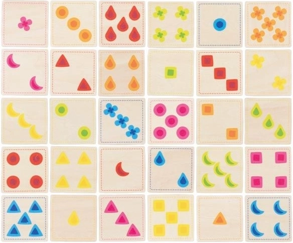 Το δραστήριο παιχνίδι «Χρώματα και Σχήματα» GOKI είναι ένα δυναμικό παιχνίδι παρατηρητικότητας που διασκεδάζει όλη την οικογένεια. Οι παίκτες ανταγωνίζονται σε ταχύτητα και ακρίβεια – όποιος βρει πρώτος τη σωστή αντιστοίχιση στα ξύλινα πλακίδια κερδίζει έναν πόντο. Χάρη στους απλούς κανόνες, τα παιδιά συμμετέχουν εύκολα ενώ ταυτόχρονα εξασκούν την αναγνώριση χρωμάτων, σχημάτων και ποσοτήτων.
