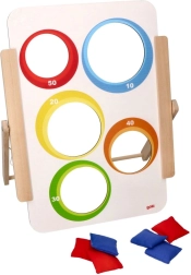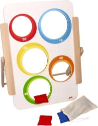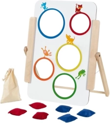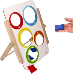 Ο στόχος στήνεται εύκολα σε τραπέζι ή πάτωμα και χάρη στα 6 υφασμάτινα πουγκιά (3 κόκκινα, 3 μπλε) είναι άμεσα έτοιμος για παιχνίδι. Για μικρότερα παιδιά μπορείτε να επιλέξετε το «νικητήριο άνοιγμα», ενώ τα μεγαλύτερα θα εκτιμήσουν τη βαθμολόγηση και τη στρατηγική των ρίψεων. Ιδανικό για το σπίτι, τον παιδικό σταθμό, το ολοήμερο καθώς και για λογοθεραπευτικές ασκήσεις.