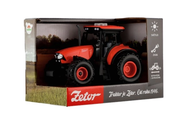 Ρεαλιστικό πλαστικό τρακτέρ ZETOR για μικρούς αγρότες, με αδρανειακό μηχανισμό για ομαλή κίνηση, φωτεινά εφέ και ήχους όπισθεν, κόρνας και εκκίνησης κινητήρα. Η συμπαγής διάσταση 14 cm ταιριάζει ιδανικά στο παιδικό χέρι και ενθουσιάζει παιδιά από 3 ετών. Οι μπαταρίες 3× AG13 περιλαμβάνονται στη συσκευασία, ώστε η διασκέδαση να ξεκινήσει αμέσως.