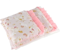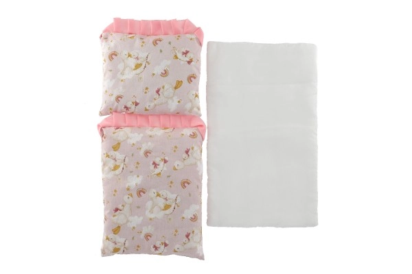 Πρακτικό σετ για κούκλες που περιλαμβάνει ό,τι χρειάζεται για άνετο ύπνο: αφράτο παπλωματάκι, φουσκωτό μαξιλαράκι και υποστρώμα. Χάρη στα απαλά υλικά και τα παιχνιδιάρικα μοτίβα ταιριάζει σε κάθε παιδικό δωμάτιο και ενισχύει την ανάπτυξη της φαντασίας και το role-play.