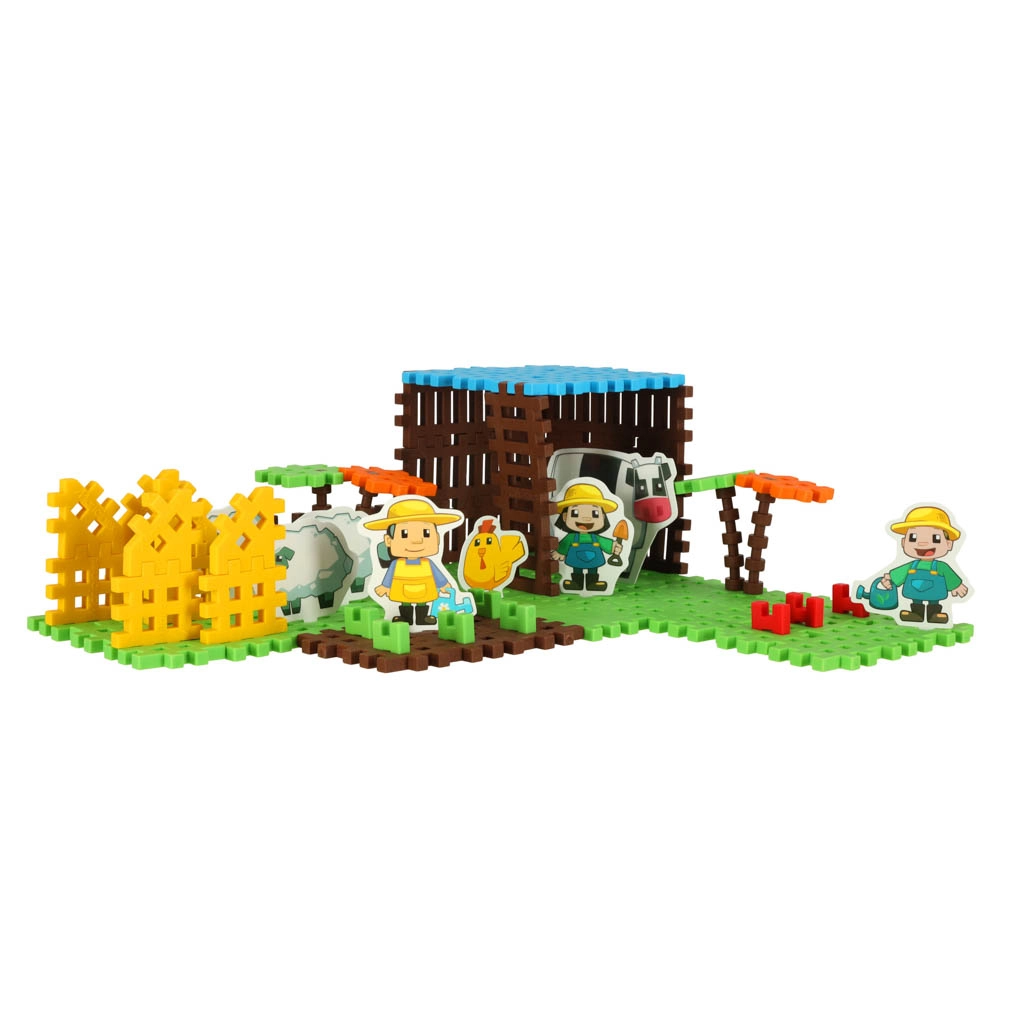 Συναρμολογήστε τη δική σας φάρμα με φιγούρες αγροτών και ζώα, όπως άλογο, αγελάδα και κότα. Με αυτό το σετ, τα παιδιά αναπτύσσουν τη φαντασία και τις πρακτικές τους δεξιότητες.