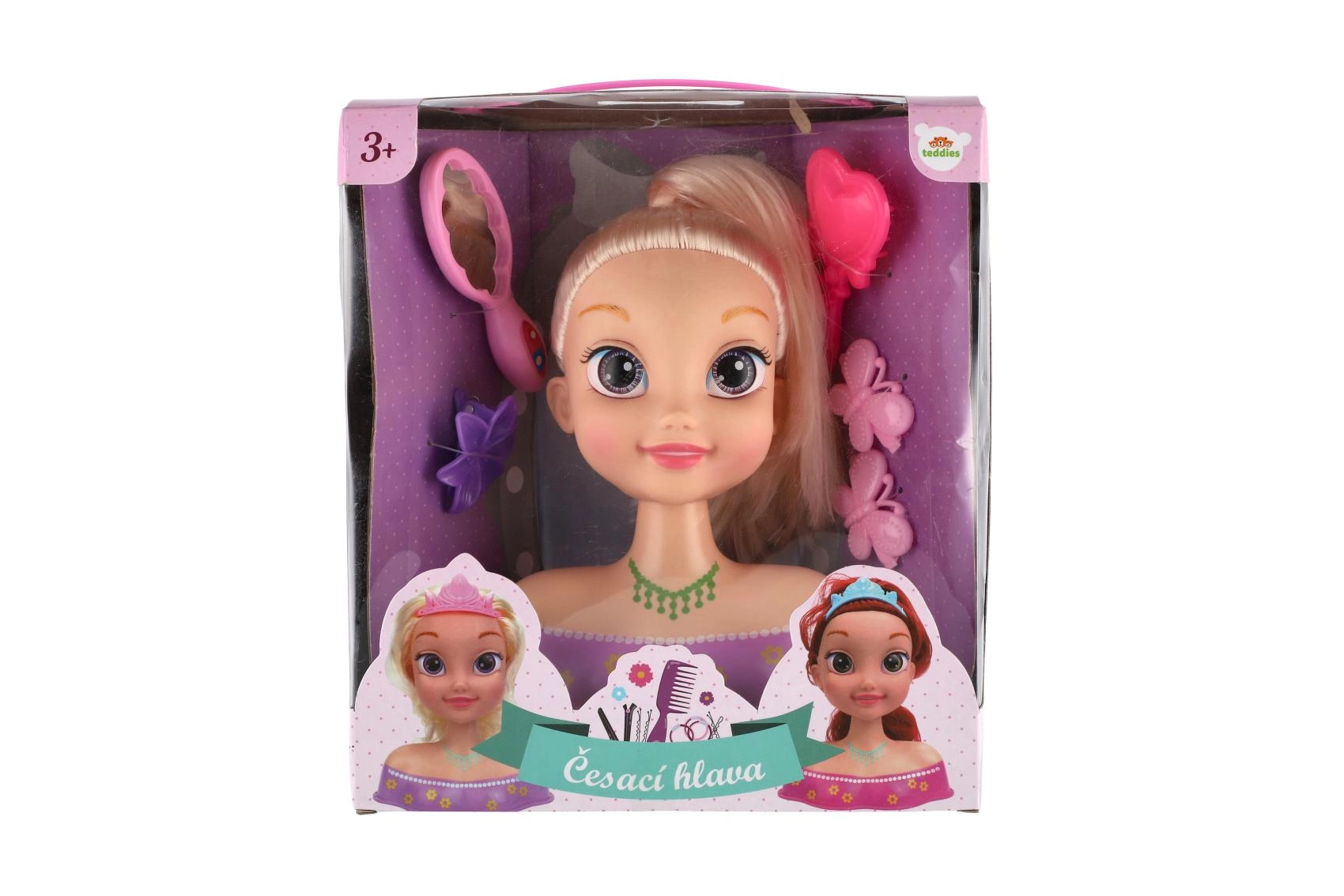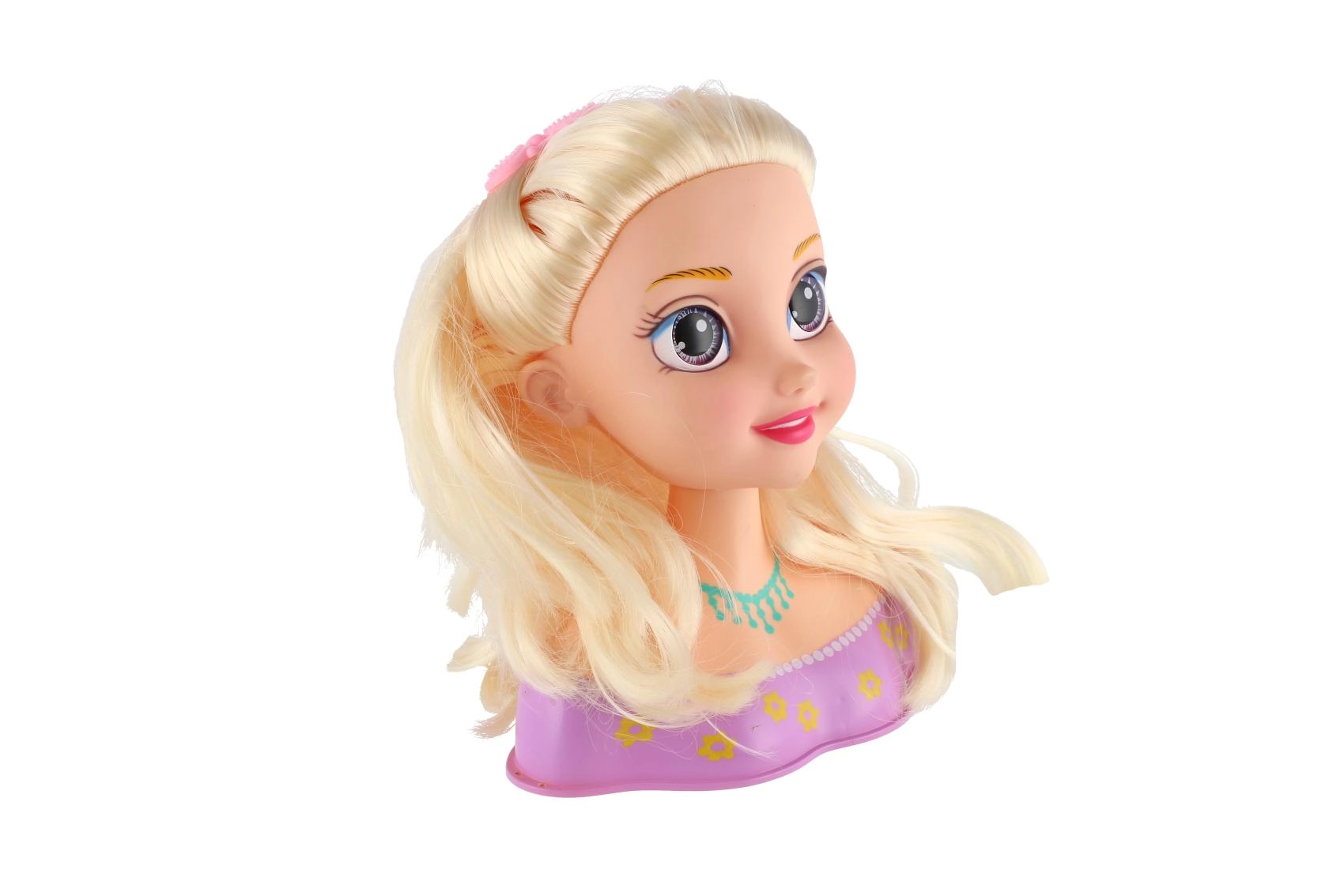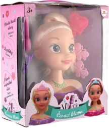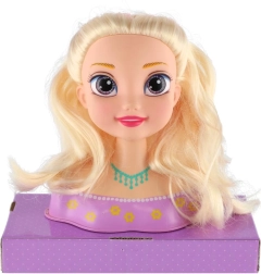 Κάντε πραγματικότητα το παιδικό όνειρο για δικό του κομμωτήριο με αυτό το κεφάλι χτενίσματος με πλούσια ξανθά μαλλιά. Χάρη στον πλούσιο εξοπλισμό μπορείτε εύκολα να δημιουργήσετε αλογοουρά, γαλλική πλεξούδα και πολλές μικρές πλεξίδες. Τα ποιοτικά μαλλιά κρατούν το σχήμα και τα αξεσουάρ όπως καθρεφτάκι, τσιμπιδάκια και χτενάκι διευκολύνουν κάθε μεταμόρφωση. Ιδανικό δημιουργικό παιχνίδι για παιδιά από 3 ετών.