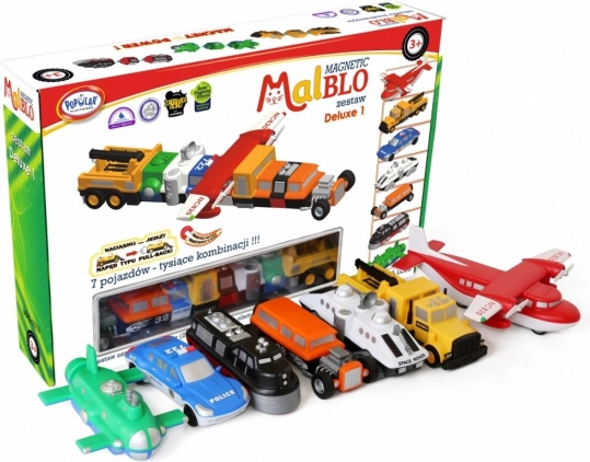 Το σετ MalBlo MAGNETIC Deluxe είναι ένα έξυπνο παιχνίδι για μικρούς μηχανικούς. 21 στοιχεία στη συσκευασία (7 έτοιμα οχήματα) επιτρέπουν να συναρμολογήσετε πάνω από 1000 διαφορετικούς συνδυασμούς – από αυτοκίνητα και ρυμουλκά μέχρι αεροπλάνα ή μηχανές του μέλλοντος. Τα κομμάτια έχουν ιδανική μαγνητική και μηχανική δύναμη σύνδεσης, ώστε να χειρίζονται εύκολα και να παραμένουν σταθερά ενωμένα.