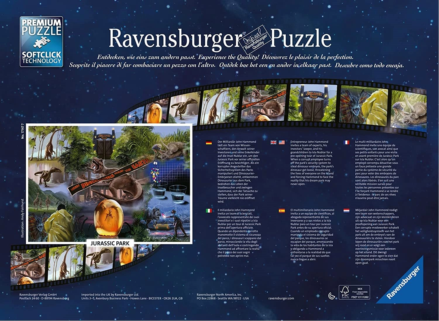 Βυθιστείτε στον κόσμο των δεινοσαύρων με το εμβληματικό θέμα της ταινίας Jurassic Park. Το παζλ 1000 κομματιών από τη Ravensburger είναι γνωστό για την κορυφαία ποιότητα κατασκευής, τις ακριβείς κοπές και την ευχάριστη αίσθηση κατά τη συναρμολόγηση. Η τεχνολογία SoftClick διασφαλίζει ότι κάθε κομμάτι εφαρμόζει σωστά και χωρίς προσπάθεια, ενώ η επιφάνεια με υφή φυσικού λίνου μειώνει τις αντανακλάσεις και αναδεικνύει τις λεπτομέρειες.