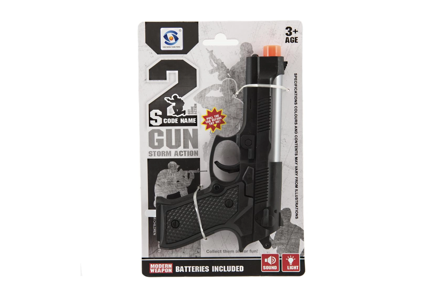 Αυτό το ρεαλιστικό πλαστικό πιστόλι θα ενθουσιάσει όλους τους μικρούς φίλους των παιχνιδιών δράσης. Χάρη στα φωτεινά και ηχητικά εφέ προσφέρει ακόμη περισσότερη διασκέδαση και ενισχύει τη φαντασία και το δημιουργικό παιχνίδι. Στη συσκευασία θα βρείτε ό,τι χρειάζεστε – οι μπαταρίες 2× AG10 περιλαμβάνονται ήδη.