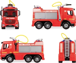 Μεγάλο πλαστικό πυροσβεστικό όχημα LENA Giga Trucks μήκους 66 cm προσφέρει ρεαλιστική διασκέδαση για παιδιά μέσα και έξω. Διαθέτει λειτουργικό υδροψεκαστήρα με δεξαμενή 1,5 l, ισχυρή εμβολοφόρα αντλία, περιστρεφόμενο και αποσπώμενο ακροφύσιο και εξακλινόμενο σκάλα. Η στιβαρή κατασκευή με ατσάλινους άξονες εξασφαλίζει σταθερότητα και μεγάλη αντοχή. Κατασκευασμένο στην Ευρώπη, πιστοποίηση TÜV.