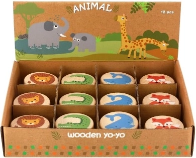 Κάθε γιο-γιο είναι διακοσμημένο με αυθεντικές εικονογραφήσεις – φάλαινα, αλεπού, κροκόδειλος και λιοντάρι. Οι χρωματιστές εκτυπώσεις κάνουν το κλασικό παιχνίδι έναν ελκυστικό σύντροφο για καθημερινή διασκέδαση.