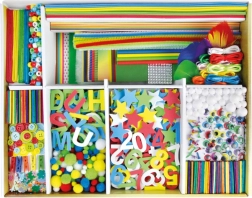 Η τεράστια ποικιλία υλικών σε μία βαλιτσούλα επιτρέπει στα παιδιά να φτιάχνουν διακοσμήσεις, φιγούρες και σχολικά πρότζεκτ – ελεύθερα, σύμφωνα με τη φαντασία τους.
