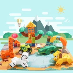 Ελάτε στην περιπέτεια του Σαφάρι και δημιουργήστε το δικό σας διασκεδαστικό πάρκο. Το σετ περιλαμβάνει παζλ για την κατασκευή του πάρκου με λιμνούλα και θάμνους.