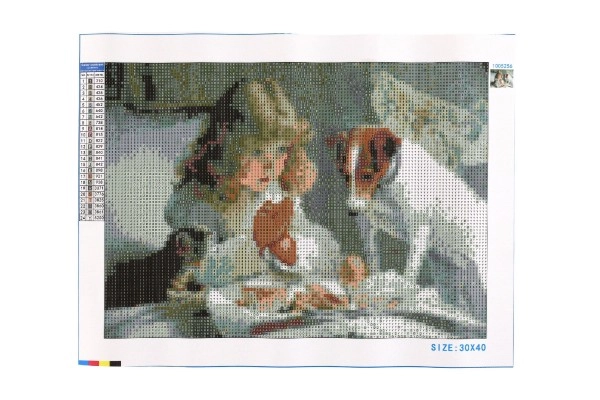 Λεπτομερές μοτίβο με κοπέλα και σκύλο σε μέγεθος 30 × 40 εκ., που μετά την ολοκλήρωση λάμπει όμορφα και ξεχωρίζει σε κορνίζα σε κάθε εσωτερικό χώρο.
