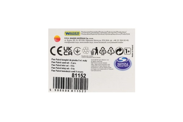 Παιδικό σετ για την άμμο με θέμα το PAW Patrol προσφέρει άφθονη διασκέδαση στην παιδική χαρά, στην παραλία και στον κήπο. Περιλαμβάνει κουβαδάκι περίπου 12 cm, φτυαράκι, τσαπάκι και 2 καλούπια. Ελαφρύ και ανθεκτικό πλαστικό, συσκευασμένο σε δίχτυ για εύκολη μεταφορά.