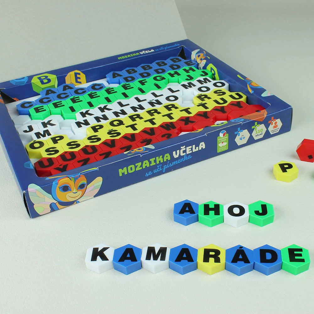 Ένα διασκεδαστικό και εκπαιδευτικό σετ κατασκευών σε σχήμα κηρήθρας βοηθά τα παιδιά από 4 ετών να κατακτήσουν το αλφάβητο μέσα από το παιχνίδι. Περιλαμβάνει γράμματα σε πέντε χαρούμενα χρώματα καθώς και σημεία στίξης για τη δημιουργία των πρώτων λέξεων. Αναπτύσσει τη λεπτή κινητικότητα, την αντίληψη των χρωμάτων και τη λογική σκέψη. Ιδανικό για παιδιά προσχολικής ηλικίας και για ενήλικες που θέλουν με παιχνιδιάρικο τρόπο να τα συνοδεύσουν στον κόσμο των γραμμάτων.