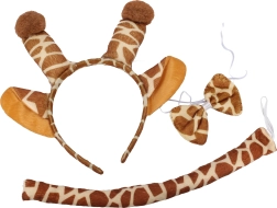 Μεταμορφωθείτε σε μια χαριτωμένη καμηλοπάρδαλη σε λίγα δευτερόλεπτα! Αυτό το καθολικό καρναβαλικό σετ περιλαμβάνει στεκάκι με αυτιά, παπιγιόν για τον λαιμό και κομψή ουρά – ιδανικό για καρναβάλι, παιδικά πάρτι και θεματικές φωτογραφίες. Εύκολη εφαρμογή και άνετη χρήση, ώστε να απολαύσετε τη διασκέδαση στο έπακρο. Εύκολη μεταμόρφωση, ελαφρύ και άνετο υλικό, πλήρες σετ αξεσουάρ.
