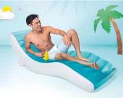 Απολαύστε χαλάρωση στο νερό και στον κήπο με το φουσκωτό στρώμα INTEX 56874. Η εργονομικά διαμορφωμένη επιφάνεια προσαρμόζεται τέλεια στο σώμα, οι δύο ανεξάρτητοι θάλαμοι εξασφαλίζουν σταθερότητα στο νερό και οι άνετες διαστάσεις επιτρέπουν ξεκούραση με άνεση και για ενήλικες. Η ελαφριά κατασκευή επιτρέπει γρήγορο φούσκωμα και δίπλωμα και ο κομψός σχεδιασμός με διαφανές επάνω στρώμα ξεχωρίζει δίπλα στην πισίνα και στην παραλία.