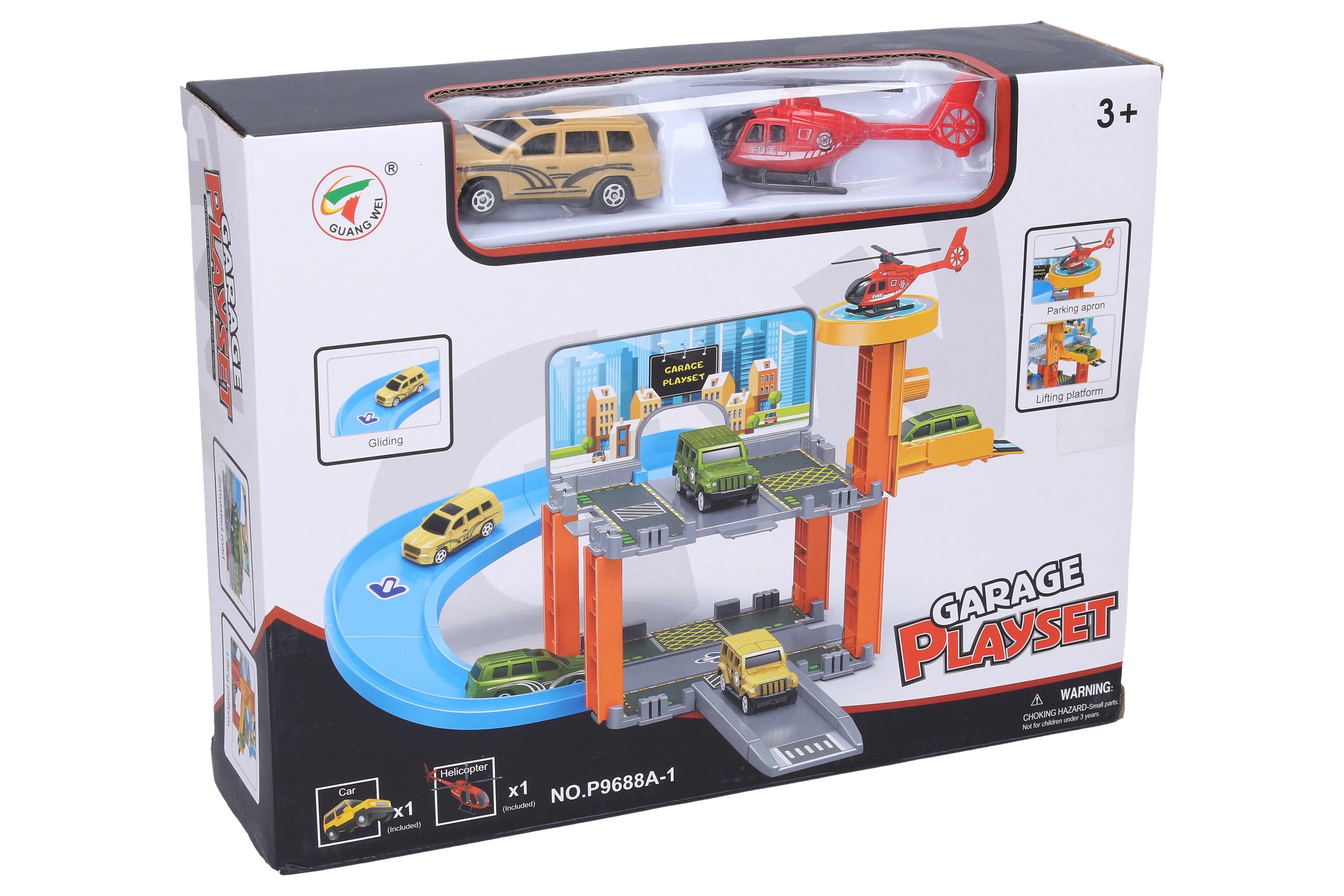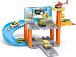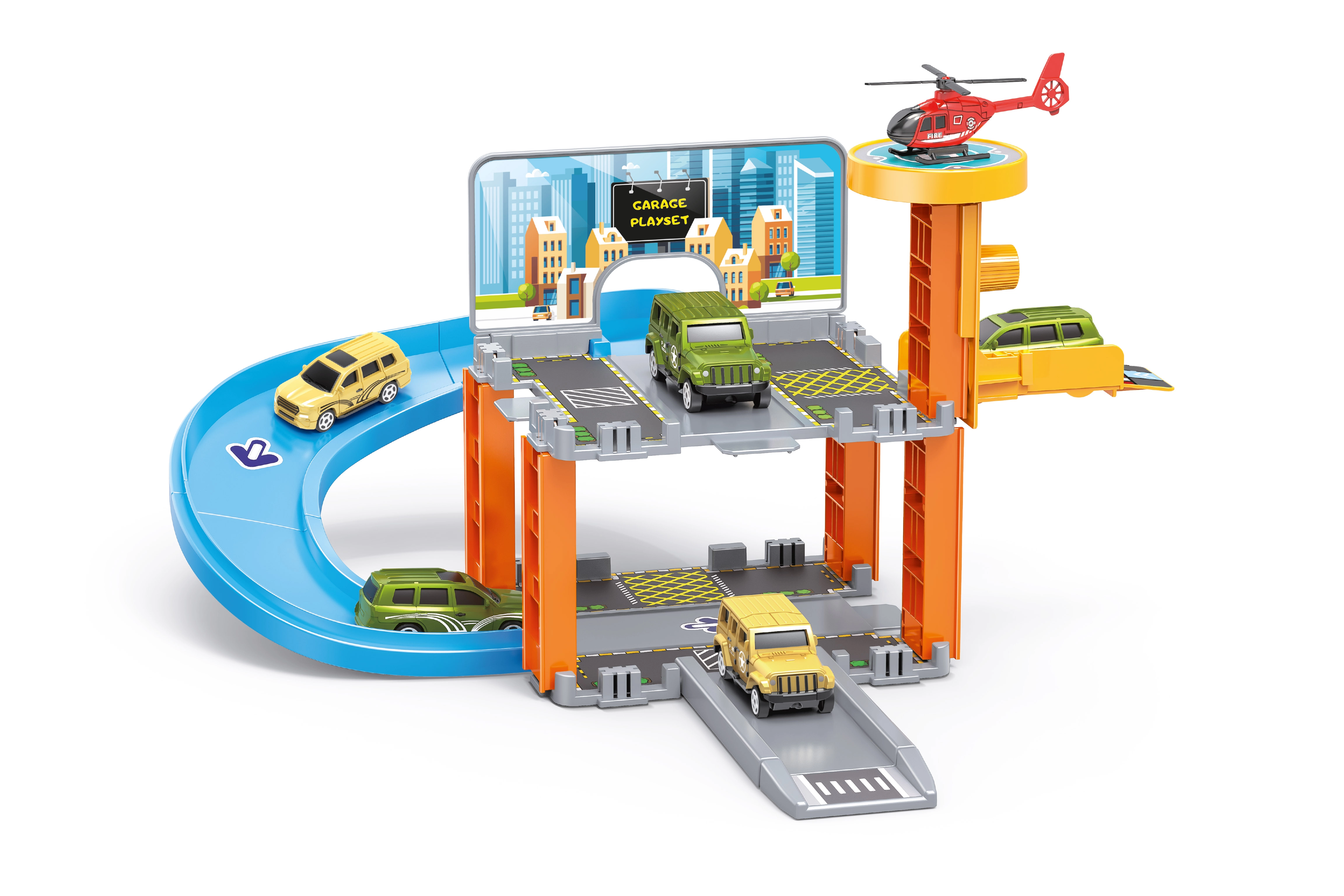 Αυτός ο λεπτομερής σταθμός στάθμευσης προσφέρει στα παιδιά ρεαλιστική εμπειρία λειτουργίας ενός δημοτικού πάρκινγκ. Με το χειροκίνητο ασανσέρ τα αυτοκίνητα μετακινούνται εύκολα μεταξύ ορόφων, ενώ το ελικοδρόμιο επιτρέπει την προσγείωση του ελικοπτέρου. Χάρη στην στιβαρή κατασκευή και τις μελετημένες λειτουργίες, τα παιδιά εξασκούν τη λεπτή κινητικότητα και τη φαντασία τους.