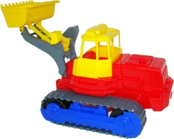 Αυτός ο πλαστικός ερπυστριοφόρος φορτωτής είναι ιδανικός για παιχνίδι στην άμμο αλλά και στο σπίτι. Χάρη στις σταθερές ερπύστριες διαχειρίζεται ανώμαλο έδαφος και η μεγάλη κουτάλα διευκολύνει το μάζεμα άμμου ή τουβλακίων. Το παιχνίδι έχει σχεδιαστεί με γνώμονα την ασφάλεια των μικρότερων παιδιών και αντέχει ακόμα και σε εντατική χρήση.