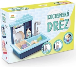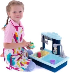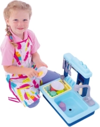 Ο παιδικός νεροχύτης για πλύσιμο πιάτων διαθέτει λειτουργική βρύση και δεξαμενή νερού που επιτρέπει πραγματική ροή, προσφέροντας ακόμη μεγαλύτερη διασκέδαση στο παιχνίδι. Περιλαμβάνει επίσης αποσπώμενο στεγνωτήριο και πρακτικά αξεσουάρ κουζίνας.