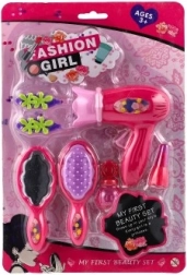 Το σετ περιλαμβάνει όλα τα απαραίτητα εργαλεία για μια μικρή στυλίστρια, συμπεριλαμβανομένου του πιστολακιού και όμορφων αξεσουάρ για διασκεδαστικές κομμωτικές δραστηριότητες.