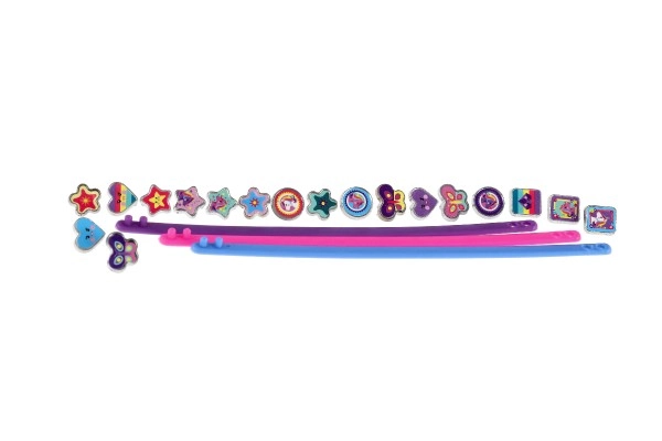 Το σετ έχει σχεδιαστεί ώστε να είναι εύκολο και διασκεδαστικό ακόμη και για μικρότερα παιδιά. Με το απλό κουμπωτό σύστημα τα παιδιά εξασκούν τη λεπτή κινητικότητα, τη φαντασία και το αισθητήριο συνδυασμού χρωμάτων. Τα βραχιολάκια είναι ελαφριά, άνετα και προσαρμόζονται εύκολα στον παιδικό καρπό.