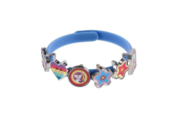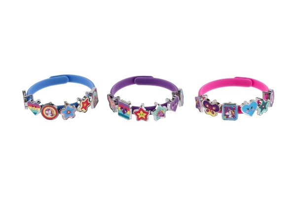 Ανακάλυψε έναν φανταστικό κόσμο με το χαρούμενο σετ κατασκευής βραχιολιών με θέμα τους μονόκερους. Στη συσκευασία θα βρεις τρία ελαστικά βραχιολάκια σε ροζ, μπλε και μοβ και δεκαοκτώ πολύχρωμα κρεμαστά σε σχήμα αστεριών, καρδιών, πεταλούδων ή μικρών φιγούρων. Κάθε μέρα μπορείς να δημιουργείς διαφορετικό στιλ – από διακριτικό μέχρι πραγματικά λαμπερό.