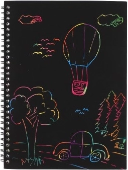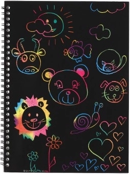 Αρκεί ένα ξύσιμο και κάτω από τη μαύρη επιφάνεια εμφανίζονται ζωηρά χρώματα. Ιδανική δημιουργική διασκέδαση χωρίς μπογιές και κόλλες.