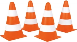 Τέσσερις πορτοκαλί κώνοι είναι ιδανικοί για παιχνίδι με μπάλα, αυτοκινητάκια ή ως βοήθεια σε επισκευές. Δημιουργήστε μαζί τους χώρο για αθλητικές δραστηριότητες ή οριοθετήστε ζώνη ασφαλείας.