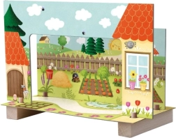 Κατασκευασμένο από ανθεκτικό ξύλο και χαρτόνι, πληροί τις απαιτήσεις της ΕΕ για την ασφάλεια των παιχνιδιών. Κατάλληλο για παιδιά από 3 ετών.