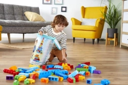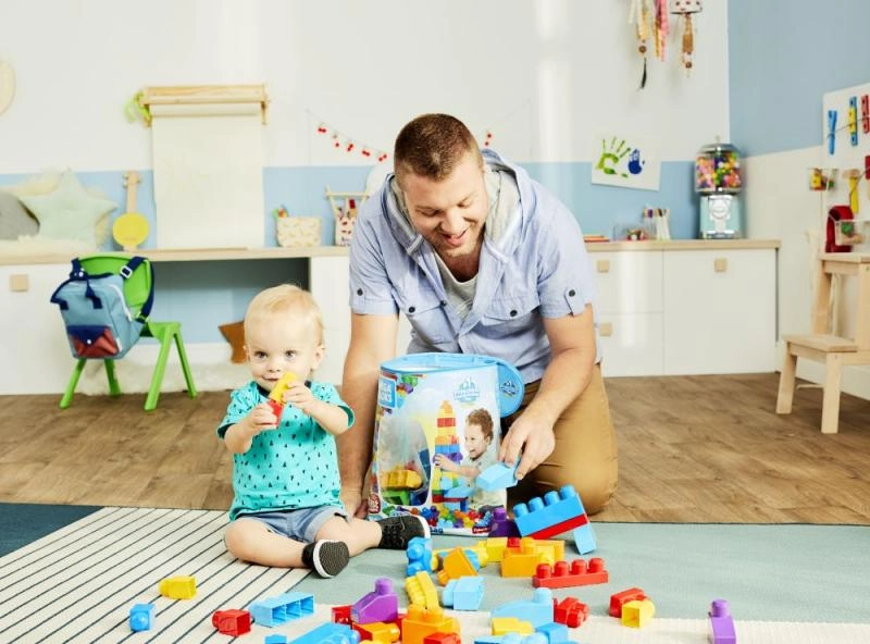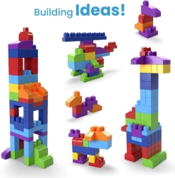 Τα μεγάλα τουβλάκια κρατιούνται άνετα και συνδέονται εύκολα, ώστε τα παιδιά να εξασκούν τον συντονισμό, τη συγκέντρωση και τη φαντασία σε κάθε κατασκευή.