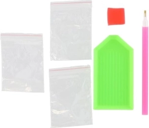 Το στυλό εφαρμογής, το δισκάκι και το κερί επιτρέπουν άνετη και καθαρή τοποθέτηση των πετραδιών – μπορείτε να ξεκινήσετε να δημιουργείτε αμέσως μετά το άνοιγμα.
