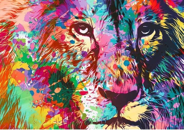 - Θέμα: Πολύχρωμο λιοντάρι – έντονη, μοντέρνα εικονογράφηση γεμάτη χρώματα.