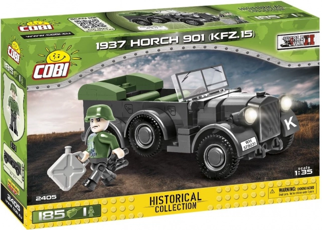 Πιστή ρέπλικα του οχήματος Horch 901, που χρησιμοποιήθηκε από τις γερμανικές ένοπλες δυνάμεις τα έτη 1937–1945, φέρνει στη συλλογή σας ρεαλιστικές φόρμες και λειτουργικές λεπτομέρειες. Το όχημα χρησιμοποιήθηκε ως επιτελικό αυτοκίνητο, ασθενοφόρο, όχημα επικοινωνιών, ελαφρύ πυροβολικό ρυμουλκό καθώς και μεταφορέας εφοδίων και στρατιωτών. Το μοντέλο COBI αξιοποιεί νέους τύπους τουβλών για ακόμη καλύτερη διαμόρφωση αμαξώματος και εύκολες τροποποιήσεις.