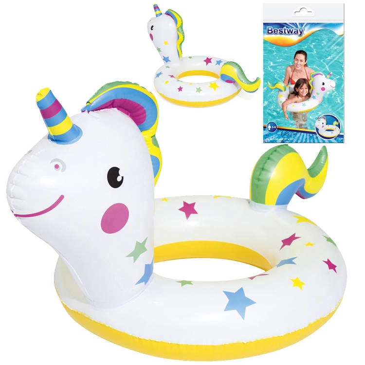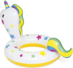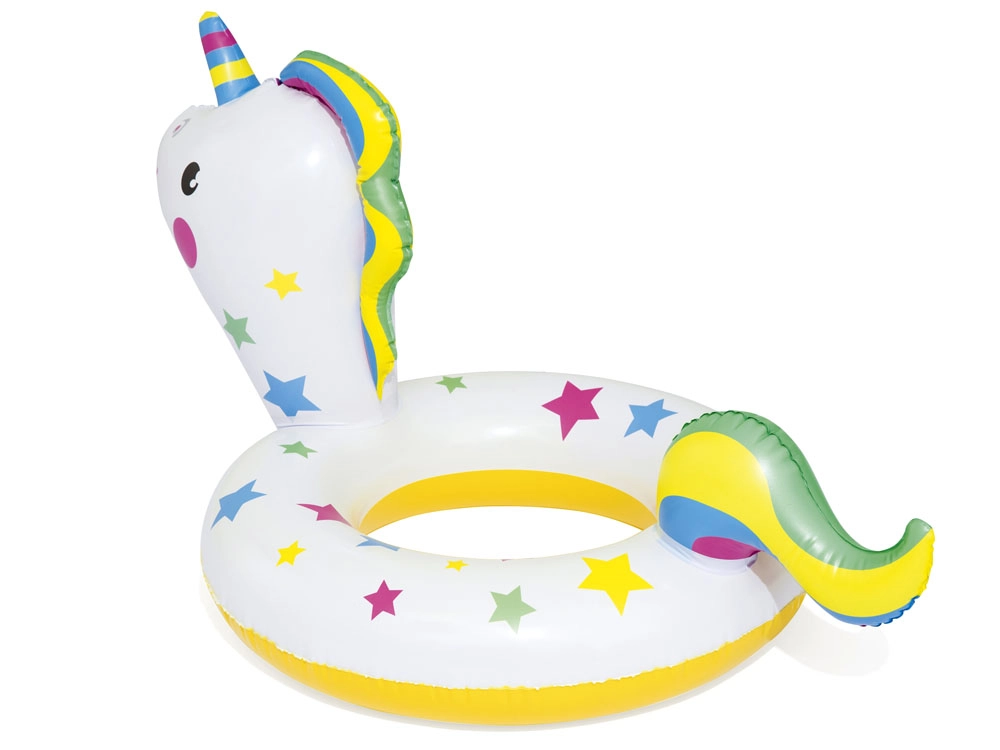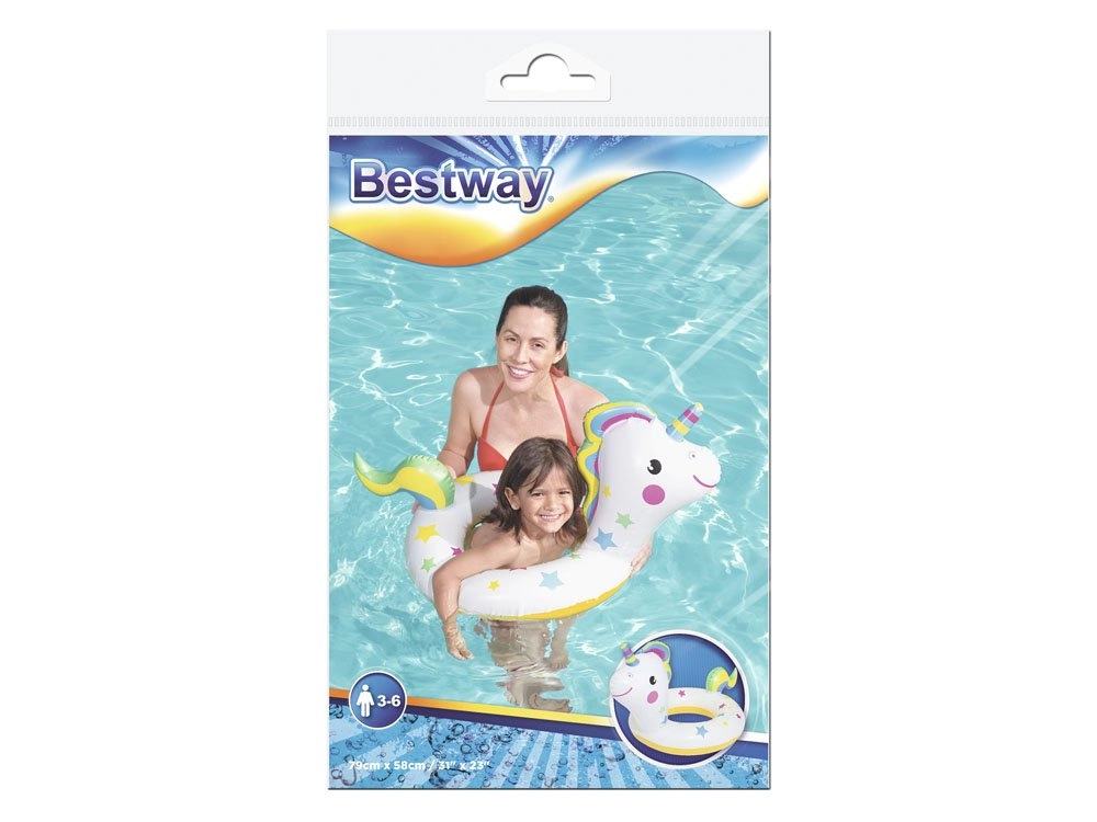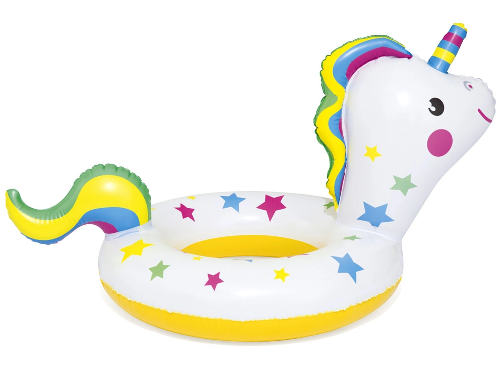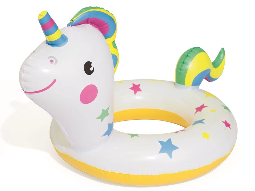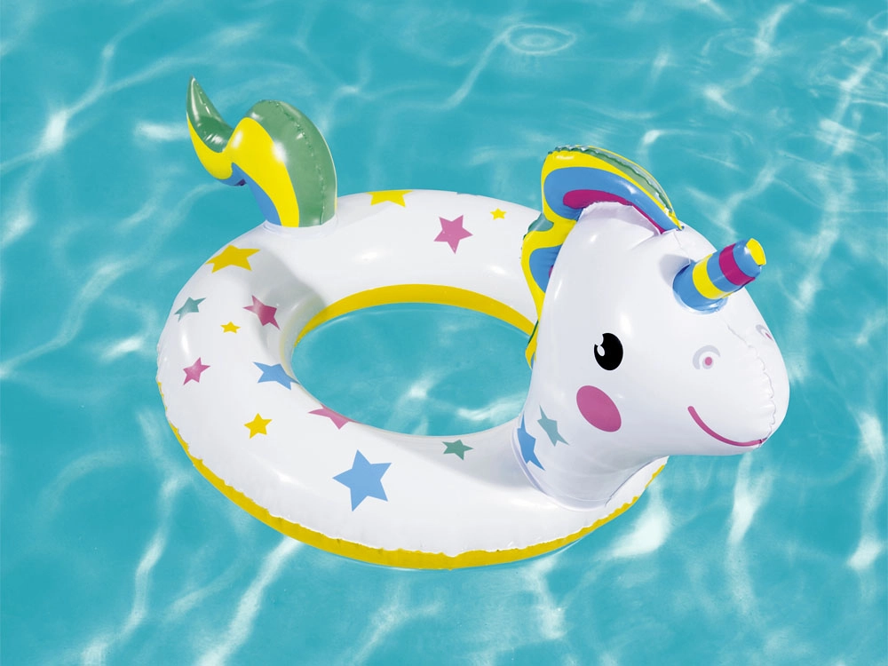 Χαριτωμένος φουσκωτός κύκλος BESTWAY σε σχήμα μονόκερου θα ενθουσιάσει όλους τους μικρούς κολυμβητές από 3 έως 6 ετών. Χάρη στο ανθεκτικό PVC υλικό, τη βαλβίδα ασφαλείας και τις συμπαγείς διαστάσεις, είναι ιδανικός για πισίνα, παραλία και λίμνη. Φουσκώνει εύκολα, ξεφουσκώνει και καταλαμβάνει ελάχιστο χώρο στην τσάντα.