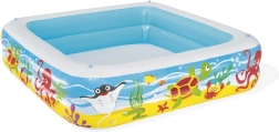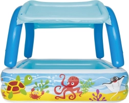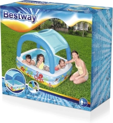 Αυτή η παιδική φουσκωτή πισίνα της Bestway είναι κατασκευασμένη από ανθεκτικό βινυλικό υλικό, που εγγυάται διασκέδαση μεγάλης διάρκειας και ασφάλεια στο παιχνίδι. Η πισίνα διαθέτει δύο ξεχωριστούς φουσκωτούς δακτυλίους, που προσφέρουν σταθερότητα και ασφάλεια, ενώ το φουσκωτό στέγαστρο προστατεύει τα παιδιά από τις βλαβερές ηλιακές ακτίνες. Στη συσκευασία περιλαμβάνεται επίσης αδιάβροχο επιδιορθωτικό αυτοκόλλητο, που επιτρέπει την επισκευή ακόμη και μέσα στο νερό.