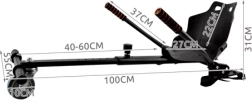 Το ανθεκτικό πλαίσιο από μέταλλο και ανθεκτικά υλικά έχει σχεδιαστεί για ασφάλεια και μεγάλη διάρκεια ζωής. Η ομαλή ρύθμιση μήκους 40–60 cm επιτρέπει ακριβή προσαρμογή στο σώμα του αναβάτη, ενώ το μπροστινό περιστρεφόμενο ροδάκι εξασφαλίζει ομαλή ευελιξία. Η συναρμολόγηση είναι γρήγορη και χωρίς εργαλεία – με ισχυρούς σφιγκτήρες και ρυθμιζόμενους ιμάντες βέλκρο στερεώνετε εύκολα τον προσαρμογέα σε διάφορους τύπους hoverboard.