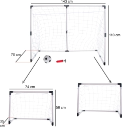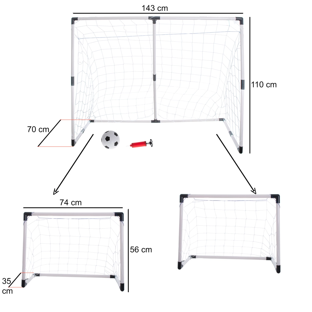 Αυτό το ποδοσφαιρικό τέρμα 2 σε 1 είναι ιδανικό για μικρούς ποδοσφαιριστές που θέλουν να δοκιμάσουν τις δεξιότητές τους τόσο στο παιχνίδι όσο και στην προπόνηση σκοραρίσματος. Ο μοναδικός σχεδιασμός επιτρέπει τη συναρμολόγηση ενός μεγάλου τέρματος διαστάσεων 143x110x70 cm ή τη διάσπασή του σε δύο μικρότερα τέρματα διαστάσεων 74x55x35 cm.