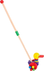 Αυτή η πολύχρωμη ξύλινη παπίτσα είναι ιδανική συνοδός για τις βόλτες. Έχει σχεδιαστεί ώστε να υποστηρίζει τη παιδική κινητικότητα και την κίνηση. Χάρη στο εύχρηστο ξύλινο ραβδί, η παπίτσα μπορεί να καθοδηγείται ή τα παιδιά μπορούν να παίζουν μαζί της αυτόνομα.