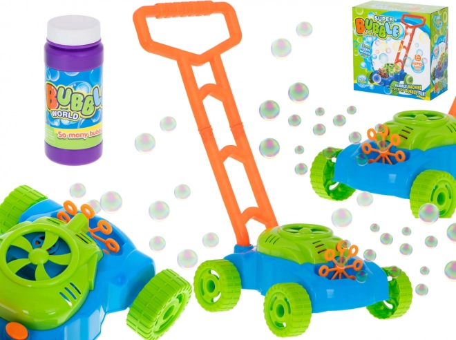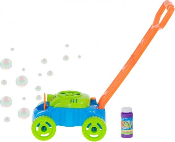 Φανταστείτε το παιδί σας να σπρώχνει αυτή τη μαγική χλοοκοπτική στον κήπο μια ηλιόλουστη μέρα. Η συσκευή απελευθερώνει μαγικές φούσκες που χαροποιούν κάθε στιγμή. Είναι εξοπλισμένη με 8 δαχτυλίδια που βυθίζονται στο διάλυμα κατά την κίνηση, ενώ ένας μικρός ανεμιστήρας δημιουργεί ένα απαλό αεράκι, σχηματίζοντας πολύχρωμες σαπουνόφουσκες.