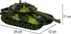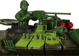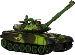 Ρεαλιστική εμπειρία μάχης – το τηλεκατευθυνόμενο άρμα με δασική παραλλαγή συνδυάζει περιστρεφόμενο πυργίσκο (κάλυψη έως 360°), φωτεινά εφέ και αυθεντική ανάκρουση κατά τη βολή. Σε ακριβές πλήγμα, σβήνουν οι ενδείξεις του αντιπάλου και μετά από τρεις επιτυχίες το άρμα του ακινητοποιείται για περίπου 30 δευτερόλεπτα.