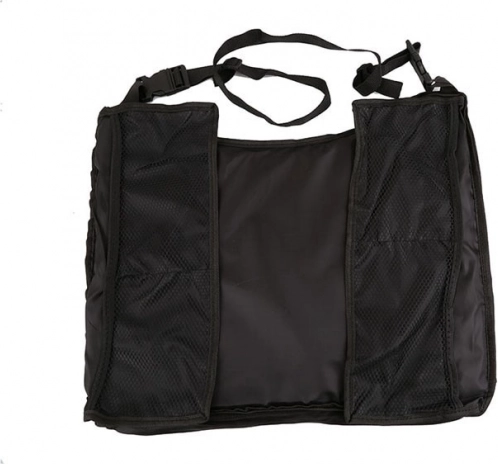 Το τραπεζάκι είναι κατασκευασμένο από ανθεκτικό και αδιάβροχο πολυεστέρα, στερεώνεται εύκολα με ρυθμιζόμενους ιμάντες και μαζεύεται το ίδιο γρήγορα. Τέσσερις διχτυωτές τσέπες στα πλαϊνά κρατούν παιχνίδια, σνακ, τηλέφωνο ή χαρτομάντιλα τακτοποιημένα.