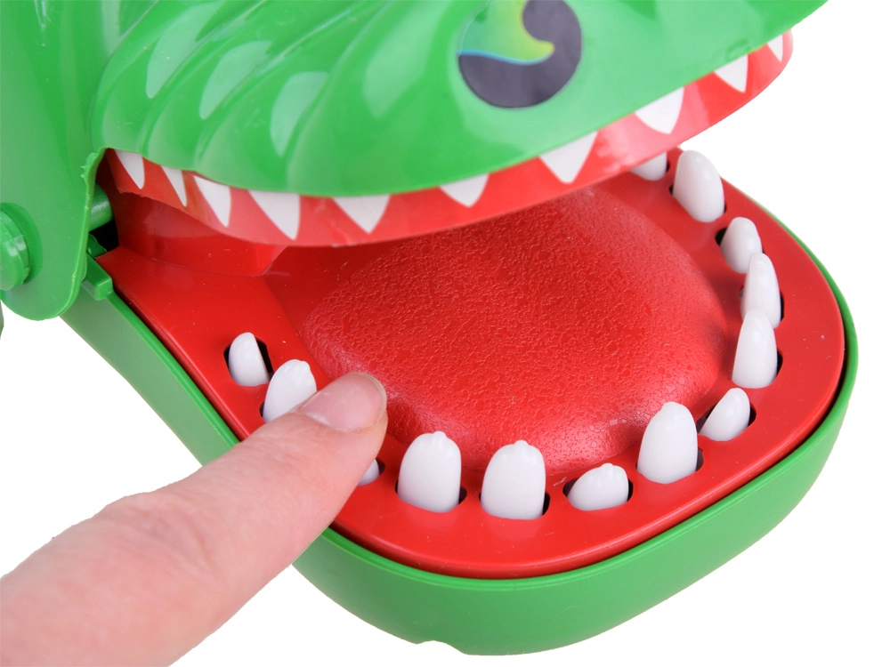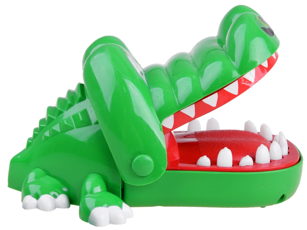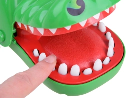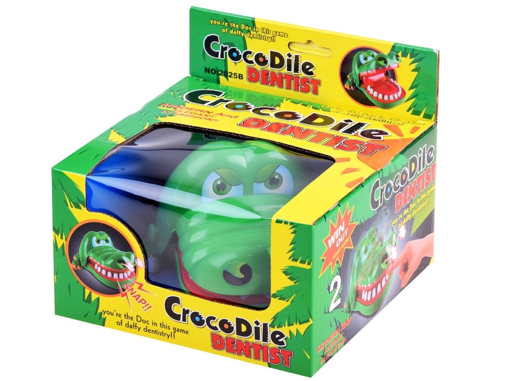 Γίνε ο οδοντίατρος ενός θαρραλέου κροκόδειλου! Οι παίκτες πατούν διαδοχικά τα δόντια – ένα είναι το «πονεμένο» και με το πάτημά του ο κροκόδειλος κλείνει ξαφνικά το στόμα. Γρήγορο παιχνίδι αντίδρασης για 2 ή περισσότερους παίκτες που προσφέρει αγωνία, γέλιο και εξασκεί αντανακλαστικά και υπομονή.