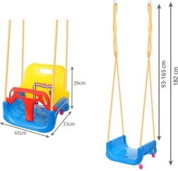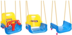 Αυτή η πολύχρωμη κούνια 3 σε 1 είναι εξαιρετική επιλογή για νήπια και μεγαλύτερα παιδιά. Στη διαμόρφωση με T‑bar και ψηλή πλάτη μεταφέρει με ασφάλεια τους μικρότερους· αργότερα μπορείτε να αφαιρέσετε το εμπρόσθιο και οπίσθιο τμήμα και να τη μετατρέψετε σε κλασικό κάθισμα. Οι ιμάντες ασφαλείας με ρύθμιση κρατούν το παιδί σταθερά, ενώ η αντιολισθητική υφή του καθίσματος αποτρέπει την ολίσθηση ακόμη και σε πιο έντονο παιχνίδι.