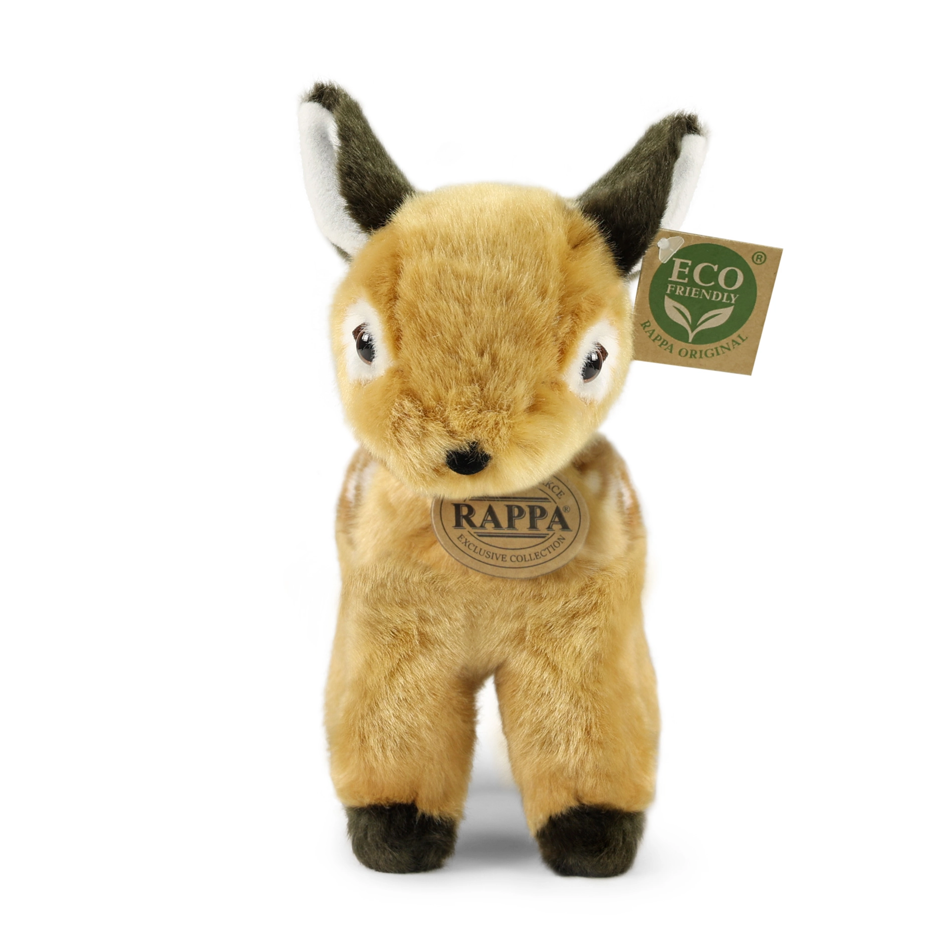 Το χαριτωμένο λούτρινο ζαρκαδάκι ύψους 22 cm από τη μάρκα RAPPA είναι φτιαγμένο από υψηλής ποιότητας λούτρινο ύφασμα και έχει απαλή φιλική προς το περιβάλλον γέμιση από ανακυκλωμένα μπουκάλια PET. Θα ενθουσιάσει μικρούς και μεγάλους φίλους των ζώων με την ρεαλιστική εμφάνισή του, την χειροποίητη κατασκευή και τα ασφαλή υλικά που είναι κατάλληλα από τη γέννηση.